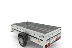 Powierzchnia transportowa: podłoga z wysokiej jakości sklejki wodoodpornej, antypoślizgowej gr. 9 mm. Burty z blachy stalowej ocynkowanej, burta tylna i przednia otwierana. Jako wyposażenie dodatkowe możliwość zamontowania burt bis, burt siatkowych, pokrowca płaskiego oraz stelaża z plandeką.