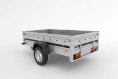 Powierzchnia transportowa: podłoga z wysokiej jakości sklejki wodoodpornej, antypoślizgowej gr. 9 mm. Burty z blachy stalowej ocynkowanej, burta tylna i przednia otwierana. Jako wyposażenie dodatkowe możliwość zamontowania burt bis, burt siatkowych, pokrowca płaskiego oraz stelaża z plandeką.