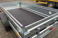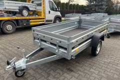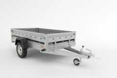 Powierzchnia transportowa: podłoga z wysokiej jakości sklejki wodoodpornej, antypoślizgowej gr. 9 mm. Burty z blachy stalowej ocynkowanej, burta tylna i przednia otwierana. Jako wyposażenie dodatkowe możliwość zamontowania burt bis, burt siatkowych, pokrowca płaskiego oraz stelaża z plandeką.