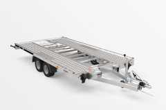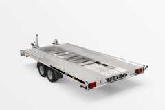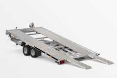 Przyczepa do przewozu samochodów z funkcją uchyłu powierzchni transportowej. Niski kąt najazdu (6 st.) daje możliwość łatwego załadunku pojazdów posiadających niskie zawieszenie. Najazdy o długości 1500 mm chowane pod powierzchnią transportową. Stalowe blokatory kół. Dostępna wersja z pełną podłogą sklejkową lub podłogą z blachy na sklejce. Możliwość zamontowania burt aluminiowych jak i stelaża z plandeką.