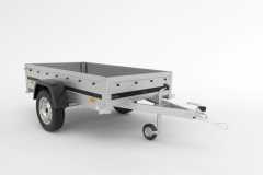 Powierzchnia transportowa: podłoga z wysokiej jakości sklejki wodoodpornej, antypoślizgowej gr. 9 mm. Burty z blachy stalowej ocynkowanej, burta tylna otwierana. Jako wyposażenie dodatkowe możliwość zamontowania burt bis, burt siatkowych, pokrowca płaskiego oraz stelaża z plandeką.